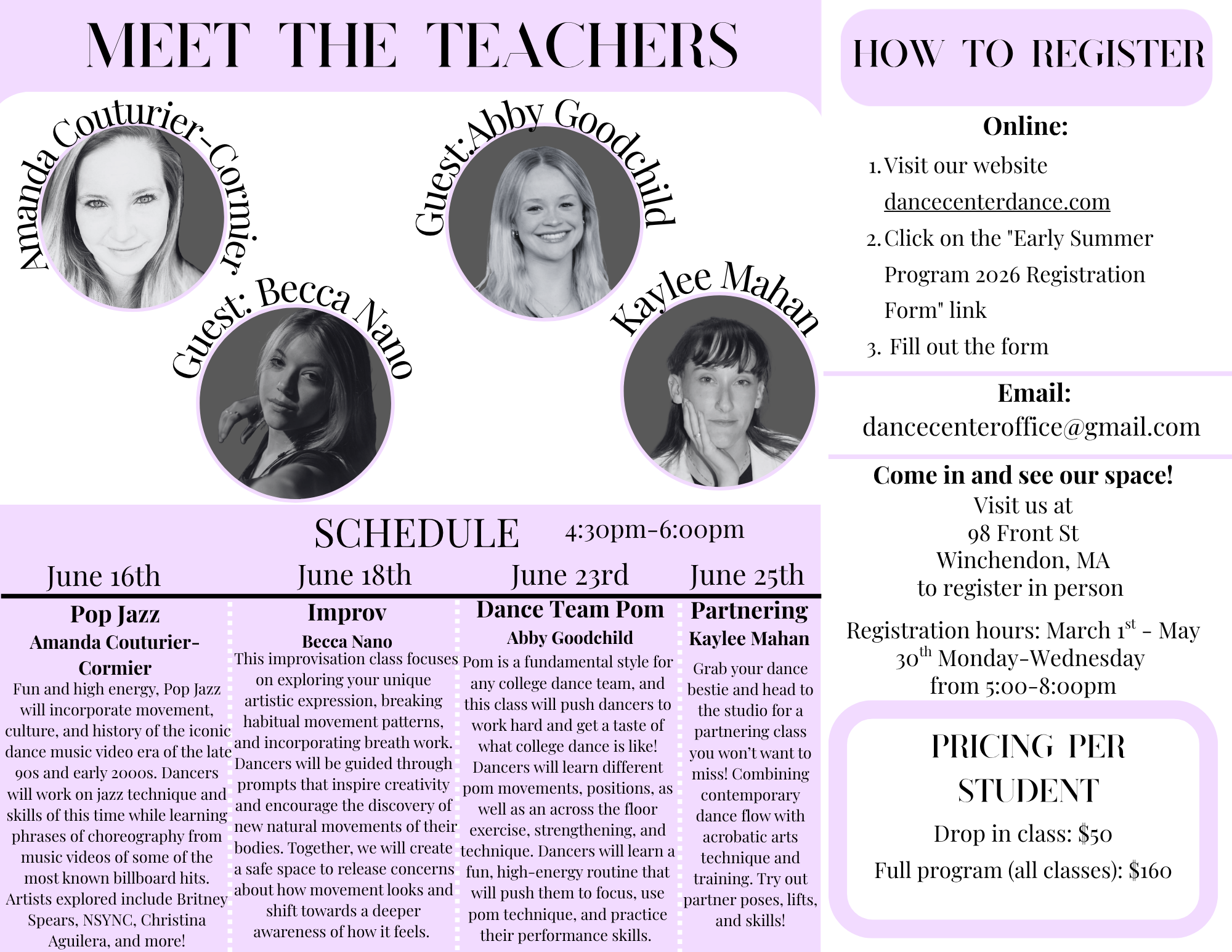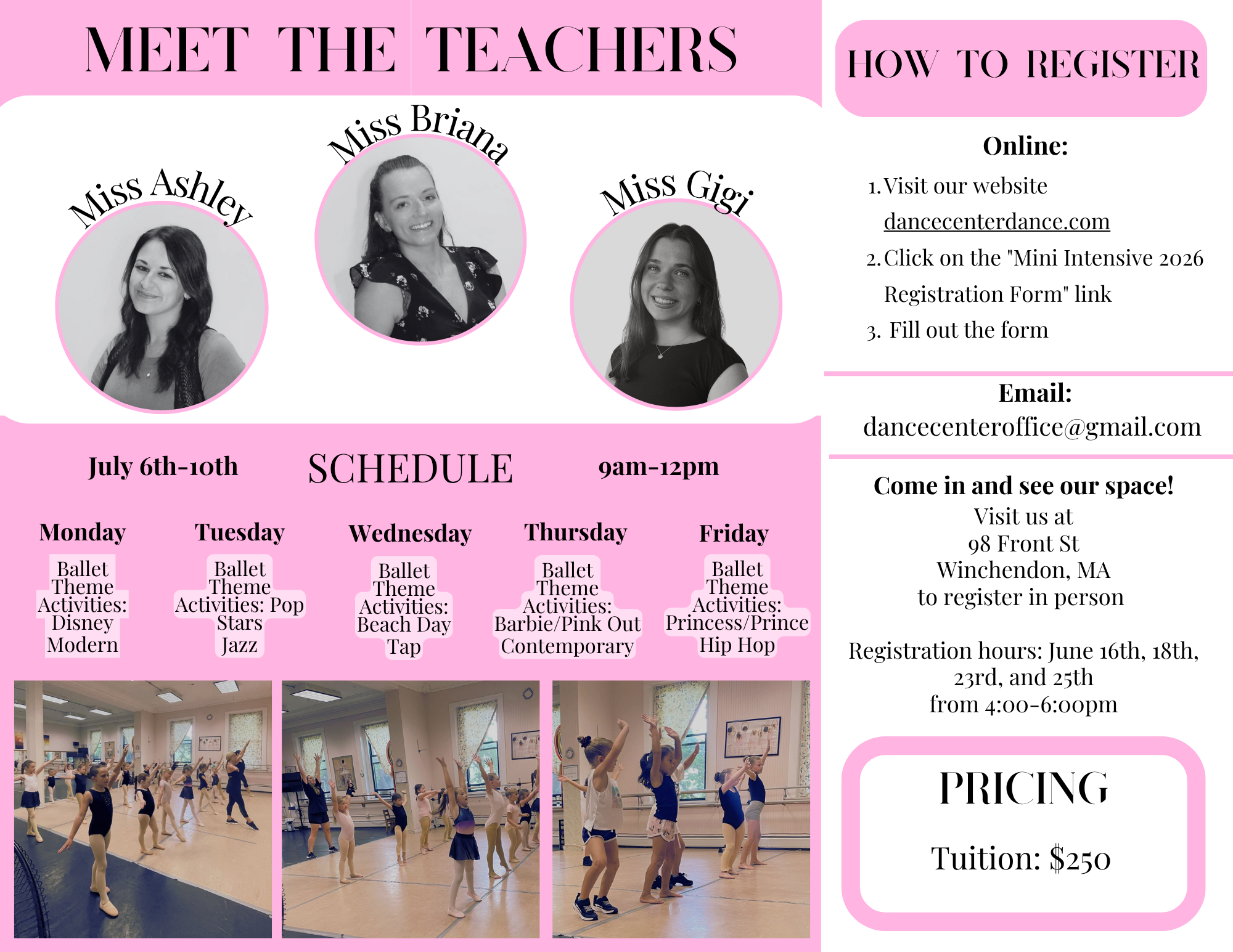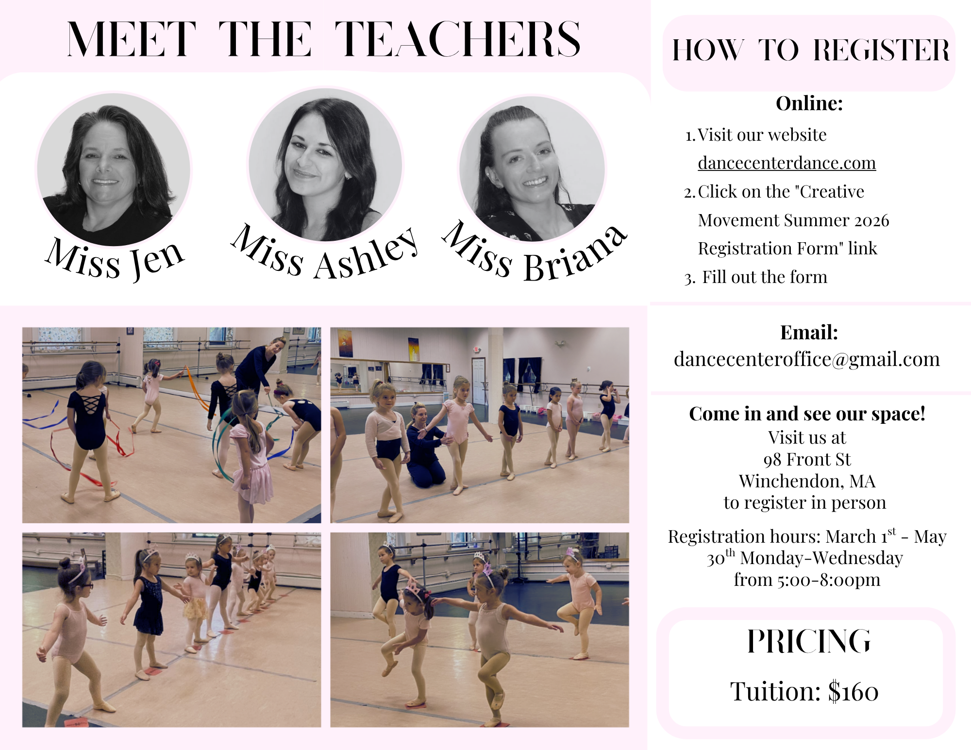 Creative Movement Summer 2026 Sign-Up Early Summer Program 2026 Sign-Up Mini Summer Intensive 2026 Sign-Up Summer Intensive 2026 Sign-Up